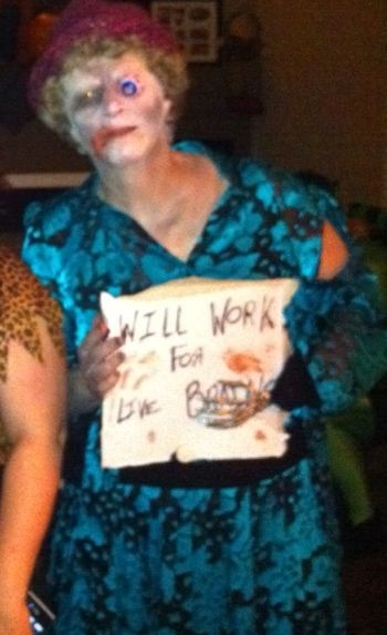 You look . . . disgusting. 🙂 Great costume. And congrats to Cathy!