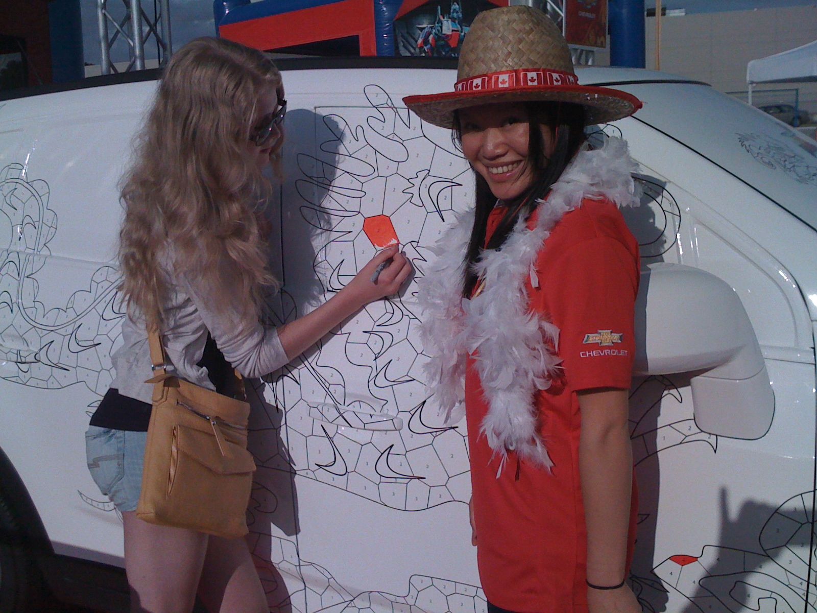 It’s important not to build up expectations. We found that out when we arrived at the tent village wedged between a warehouse and an arm of the Fraser River. Right off, we were met by Chevrolet pushers who invited us to apply colored sharpies to the color-by-number car stationed near the entrance. My hopes for a Gaimanesque evening were killed before we started.